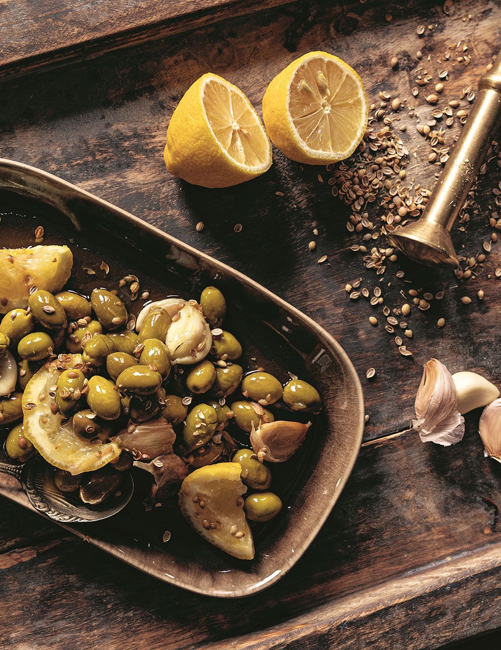 Garlic Potatoes with Olives, Lemon, and Coriander